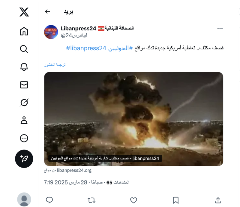جاء نشر الصورة عقب 40 غارة أمريكية مساء الخميس 27 مارس 2025 على عدد من المحافظات اليمنية الخاضعة لسيطرة الحوثيين بما فيها العاصمة صنعاء.