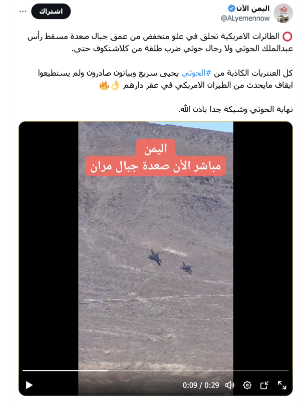 تداولت حسابات وقنوات على منصة إكس مؤخرا مقطع فيديو مدعية أنه لتحليق الطائرات الأمريكية فوق جبال صعدة؛ جاء تداول الادعاء عقب سلسلة من الغارات التي نفذها الطيران الأمريكي مواقع للحـ.ـوثيين في عدد من المحافظات مساء الثلاثاء