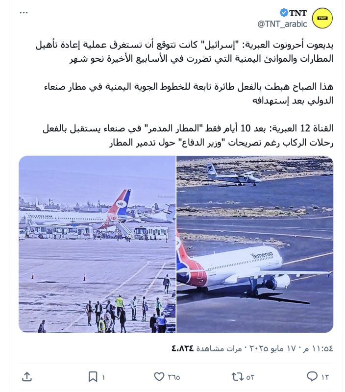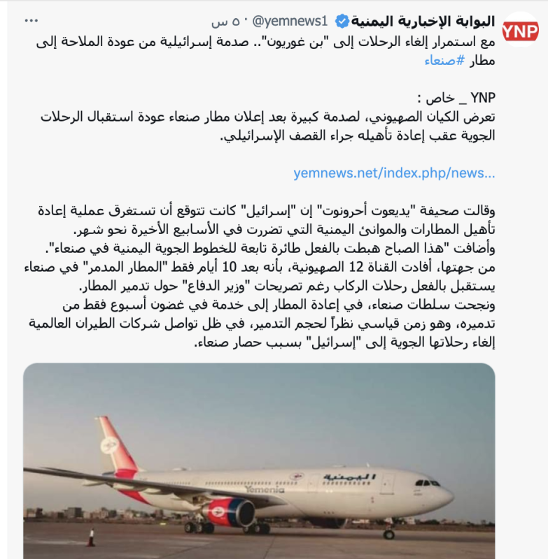 تداولت حسابات وصفحات مواقع إلكترونية على منصة "إكس" (تويتر سابقاً) خبراً زعمت فيه أن صحيفة "يديعوت أحرونوت" الإسرائيلية قالت إن إسرائيل كانت تتوقع أن تستغرق عملية إعادة تأهيل المطارات والموانئ اليمنية، التي تضررت خلال الأسابيع الأخيرة، نحو شهر كامل.