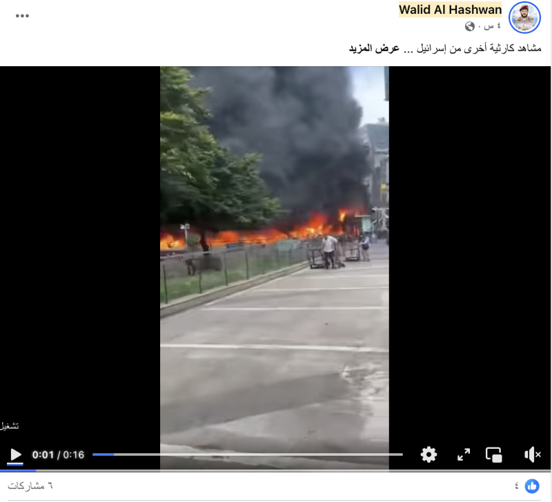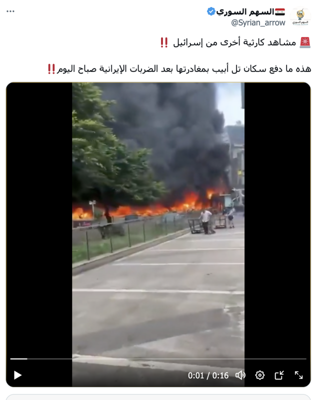 تداولت صفحات وحسابات على مواقع التواصل الاجتماعي مقطع فيديو يُزعم أنه يُظهر لحظة هجمات إيرانية حديثة على مدينة تل أبيب، مشيرين إلى أن "هذه المشاهد دفعت سكان تل أبيب إلى مغادرتها صباح اليوم بعد الضربات الإيرانية".