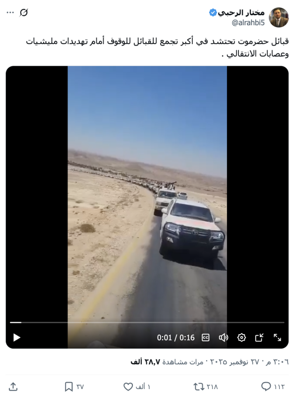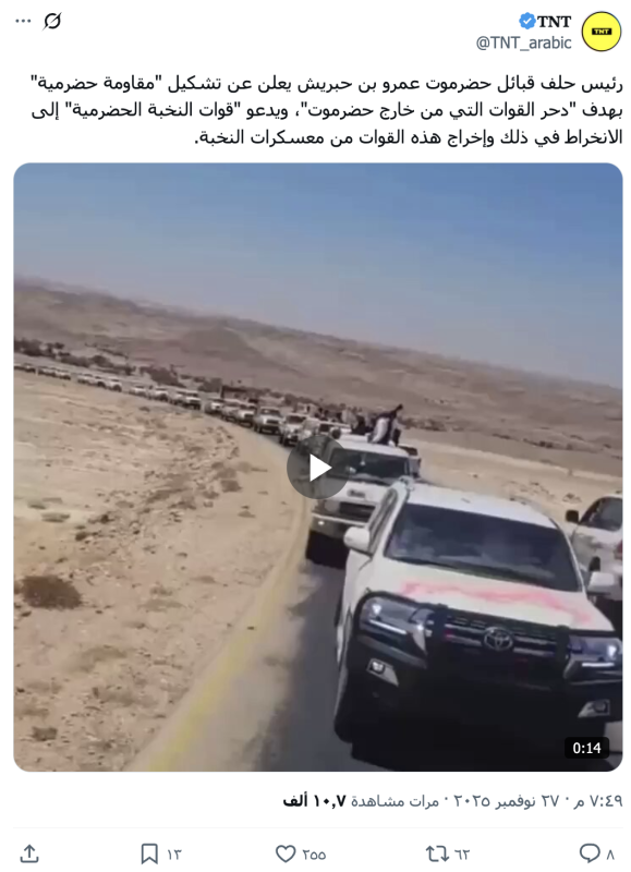 نشرت حسابات على منصة أكس مقطع فيديو مدعية أنه لحشد قبائل حضرموت للوقوف أمام تهديدات المجلس الانتقالي مؤخرا