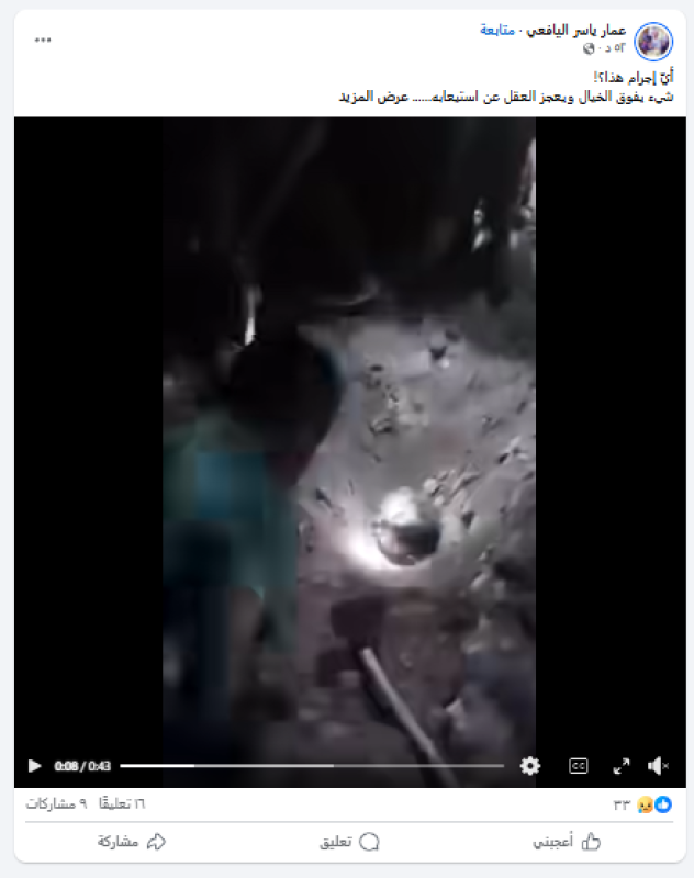 نشرت حسابات على منصة فيسبوك يوم الأحد (4 يناير 2026)، مقطع فيديو مدته 43 ثانية، زعم ناشروه أنه يوثق أسرى من أبناء الجنوب تم دفنهم أحياء في محافظة حضرموت.