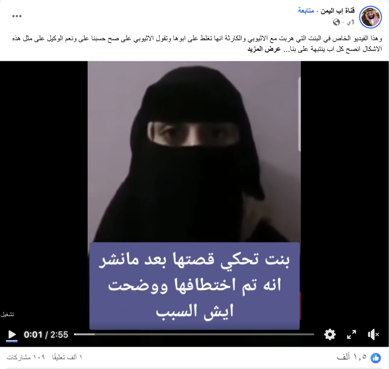 بالتحقق من الصوت في الفيديو لم تشر الفتاة إلى أنها تزوجت من شاب يمني أو إثيوبي ولم تذكر أي اسم من بعيد أو قريب .